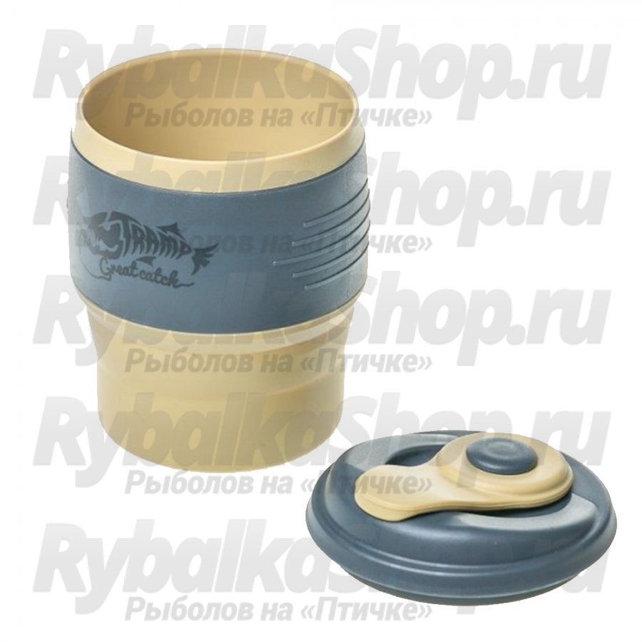 Кружка силиконовая складная с крышкой Tramp песочный/черный, 350мл