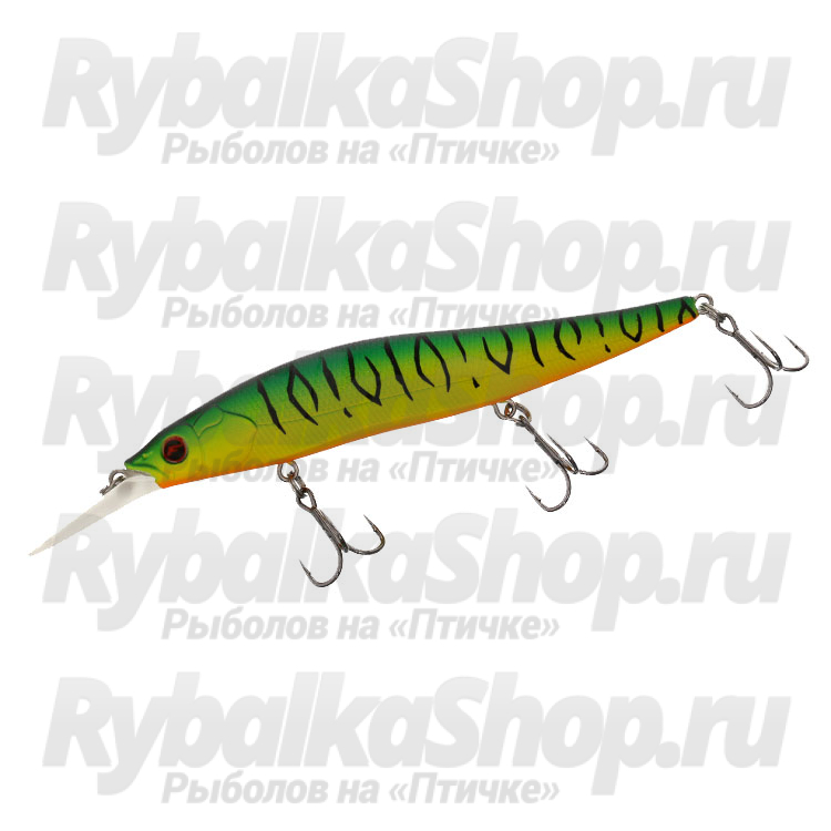 Это воблер minnow вытянутой формы, весит он 14,4 г и имеет длину 110 мм. Благодаря системе дальнего заброса летит не только далеко, но и очень точно. Подвижные стальные шарики при забросе уходят далеко в хвост, смещая туда центр тяжести. При первом же рывке они возвращаются на место и фиксируются специальным приливом снизу, благодаря чему при проводке балансировка приманки остается неизменной. Шарики издают негромкий звук высокой частоты.