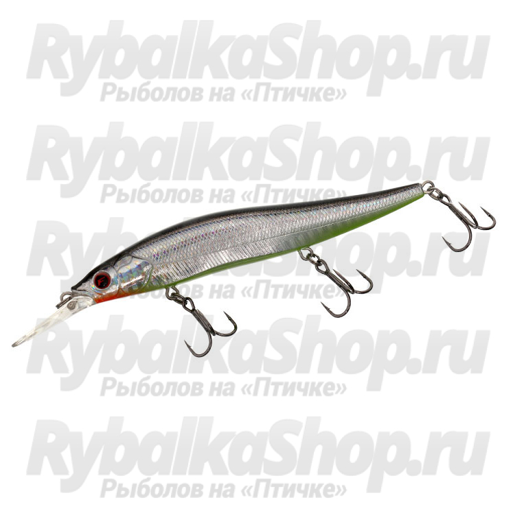 Это воблер minnow вытянутой формы, весит он 14,4 г и имеет длину 110 мм. Благодаря системе дальнего заброса летит не только далеко, но и очень точно. Подвижные стальные шарики при забросе уходят далеко в хвост, смещая туда центр тяжести. При первом же рывке они возвращаются на место и фиксируются специальным приливом снизу, благодаря чему при проводке балансировка приманки остается неизменной. Шарики издают негромкий звук высокой частоты.