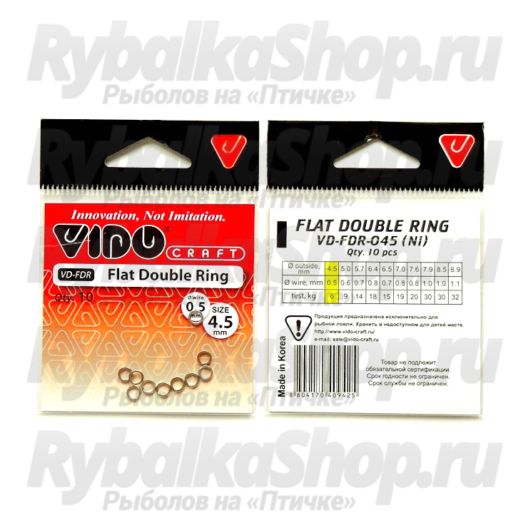 Кольцо заводное Vido Craft Flat Double Ring VD-FDR изготавливается из качественной стальной проволоки. Применяется для привязывания воблера и шарнирного монтажа при использовании неразборных чебурашек. Заводные кольца также используются для смены крючков у воблеров и блесен, могут применяться в карповой ловле.