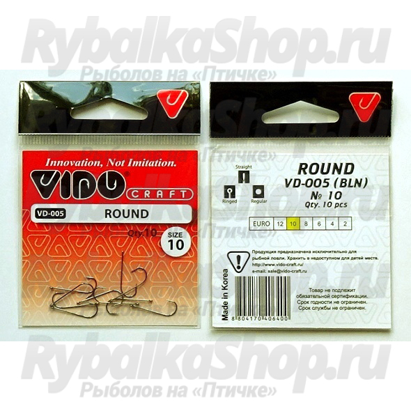 Vido Craft VD-005 Round (BLN) Euro — это серия надежных и прочных крючков, предназначенная специально для ловли на животные насадки. Эта серия оптимально подходит для ловли на небольшого червя или опарыша. Крючки Round показывают отличные результаты при ловле самых разнообразных мирных рыб.