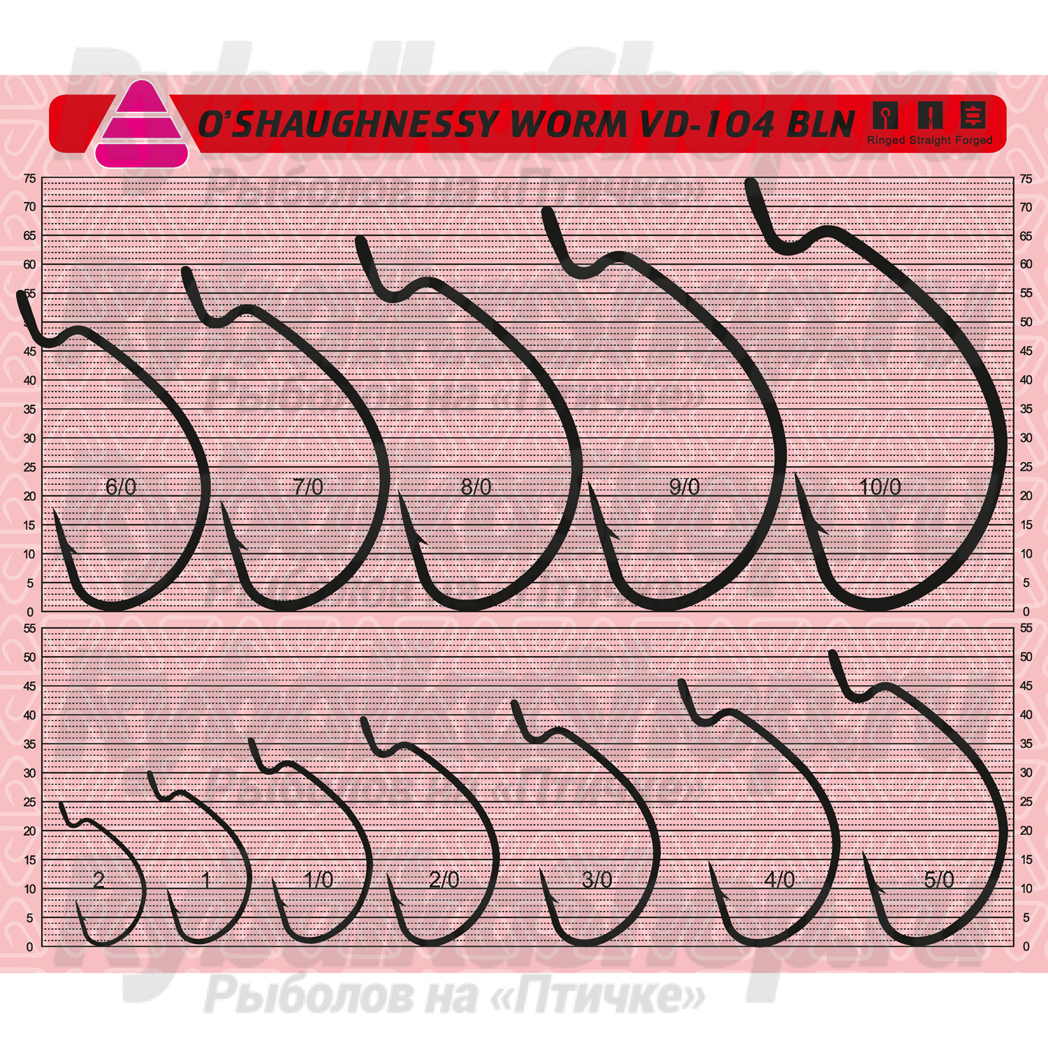 Крючок офсетный Vido Craft VD-104 O'Shaughnessy Worm (BLN) № 6/0, 2 шт/уп VD104-6/0(2)