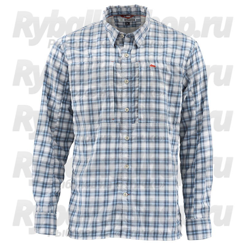 Рубашка Simms BugStopper LS Shirt, Plaid Faded Denim Plaid, S
