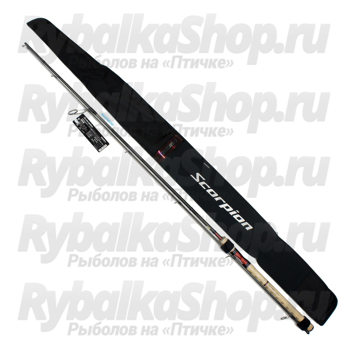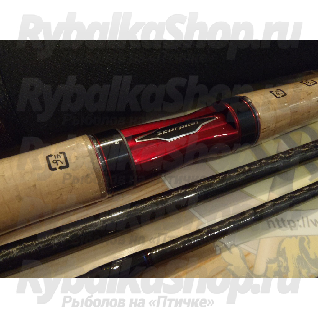 Универсальные спиннинги Shimano Scorpion, в серии 2 и 5 частные модели. Особенность двухчастных моделей в том, что они выполнены в японском стиле удилищ - удилище разделено не ровно ни две равные части, а на основной длинный  бланк и рукоять. За счет этого удилище обладает более высокими характеристиками для заброса.