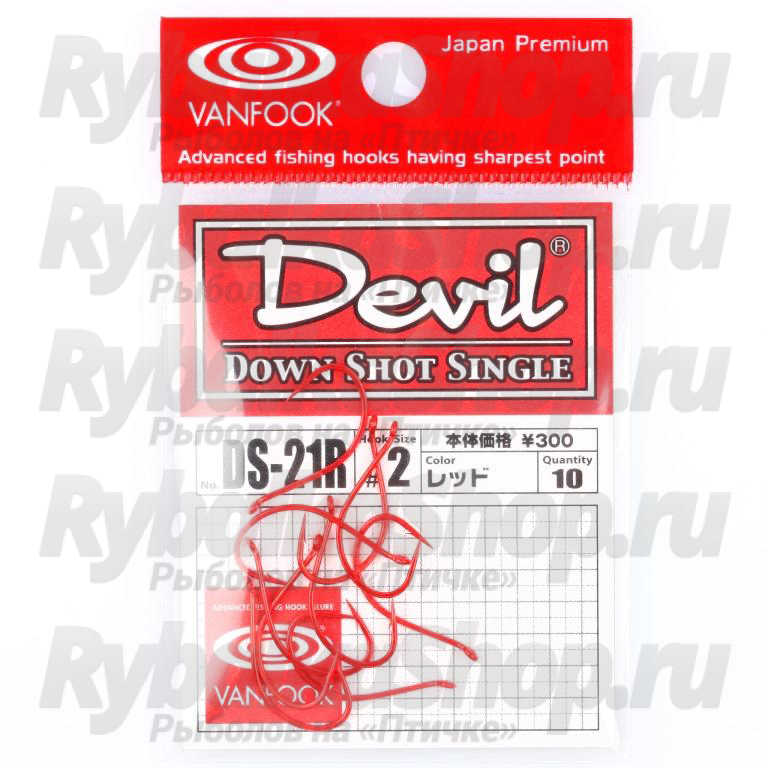 VANFOOK DS-21 - японские одинарные крючки класса Medium с изогнутым ушком для оснастки дроп-шот. Цвет крючка - матовый черный (21В) или красны (21R). 10шт. в упаковке.