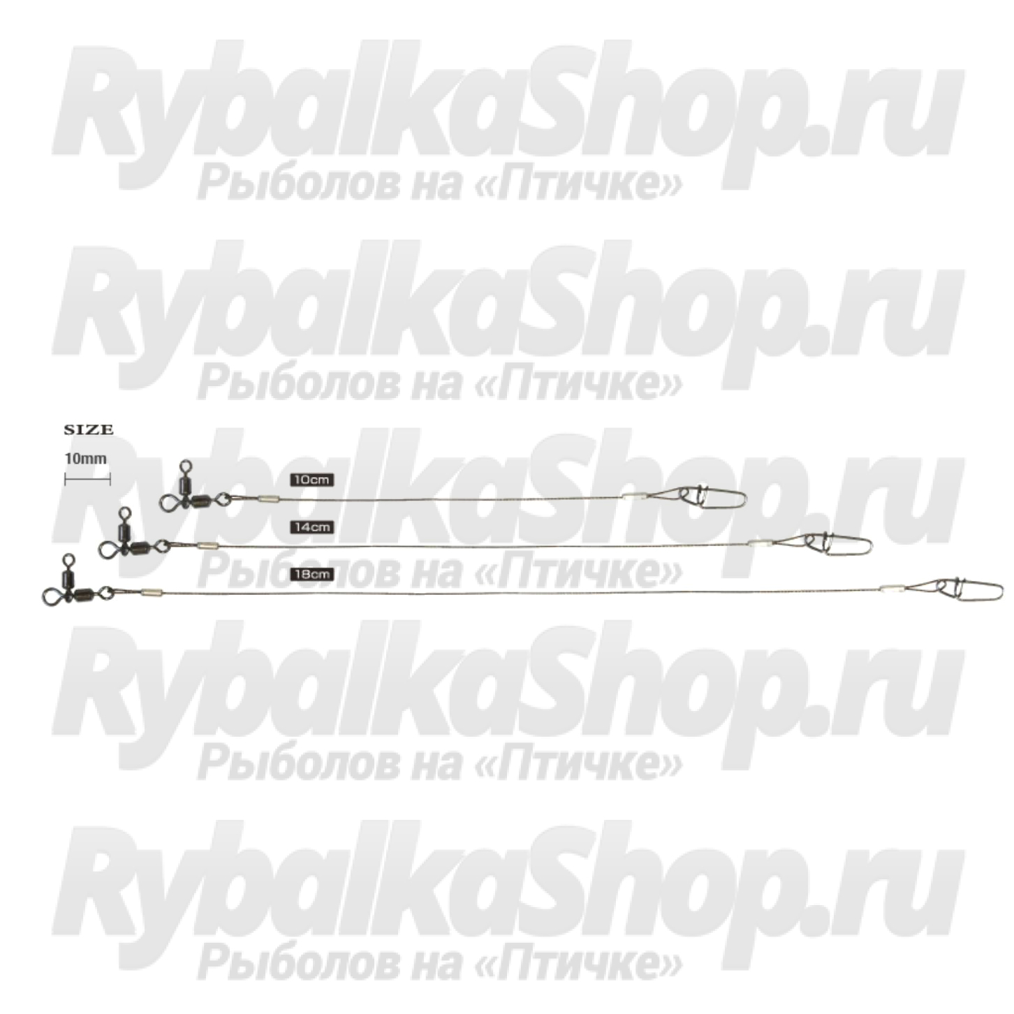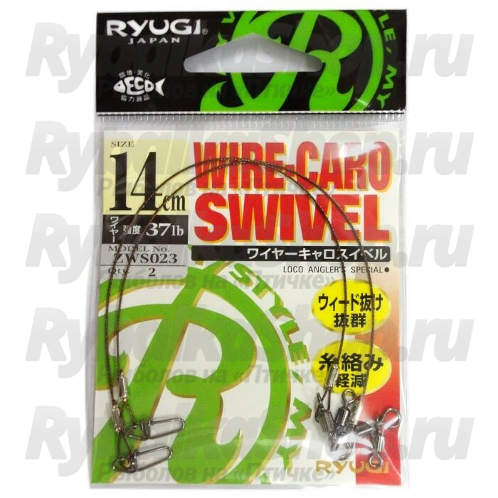 Wire Caro Swivel - оснастка готовая от японского гиганта Ryugi. Для тех кто ценит изящество. Вертлюг - размеры 6х7, разрывная нагрузка 83 lb; поводок - размеры #38х7, разрывная нагрузка 37 lb; застежка - размеры 1, разрывная нагрузка 51 lb.