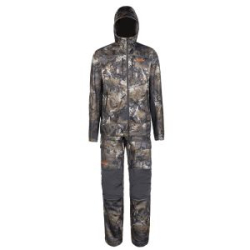 Он выполнен из нешуршащего мембранного водонепроницаемого и ветронепродуваемого материала Windstopper, при этом ткань обладает отличными «дышащими» характеристиками. В качестве утепляющего слоя использован утеплитель Primaloft (внутри Polartec), обеспечивающий эффективную термоизоляцию. Капюшон куртки регулируется по объему головы, спереди расположены два нагрудных и два боковых кармана для патронов. Высокий воротник надежно защищает шею и подбородок охотника от холода, ветра, осадков и механического повреждения. Костюм имеет камуфляжную расцветку Mossy Oak Blades, которая эффективно маскирует охотника на любой местности. Брюки оснащены съемными подтяжками, которые фиксируются замком-молнией в их верхней части. Дополнительно имеется ремень. Температурный режим для комфортного использования костюма – до - 30°C.