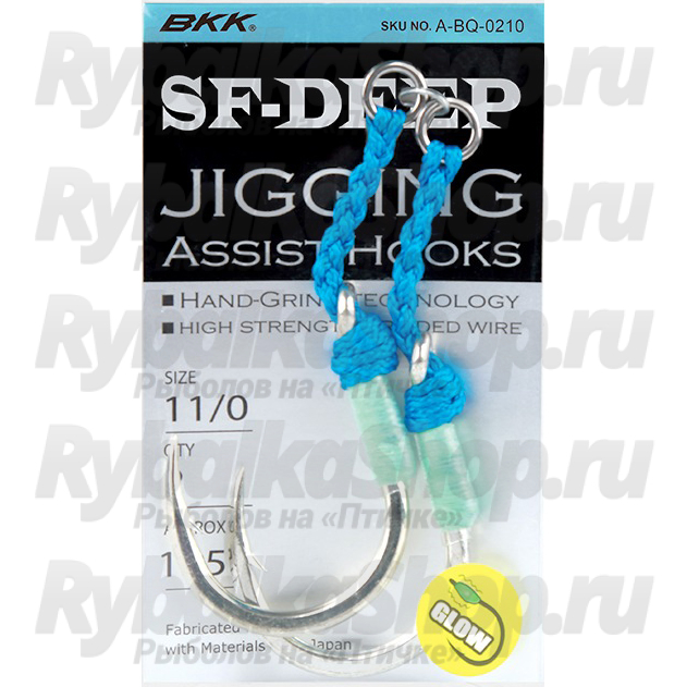 BKK SF-Deep SF8090-HG - крючки-ассисты для оснащения приманок для морской рыбалки. Надежный крючок BKK Deep, изготовлен из прочного материала BKK (6X) с использованием оптимальной технологии термообработки для создания высокопрочных крючков, которые не подведут в борьбе с крупной морской рыбой. В ассисте используется материал BKK hollow-core assist cord с полым сердечником, это прочный материал, который выдержит борьбу с крупной рыбой.