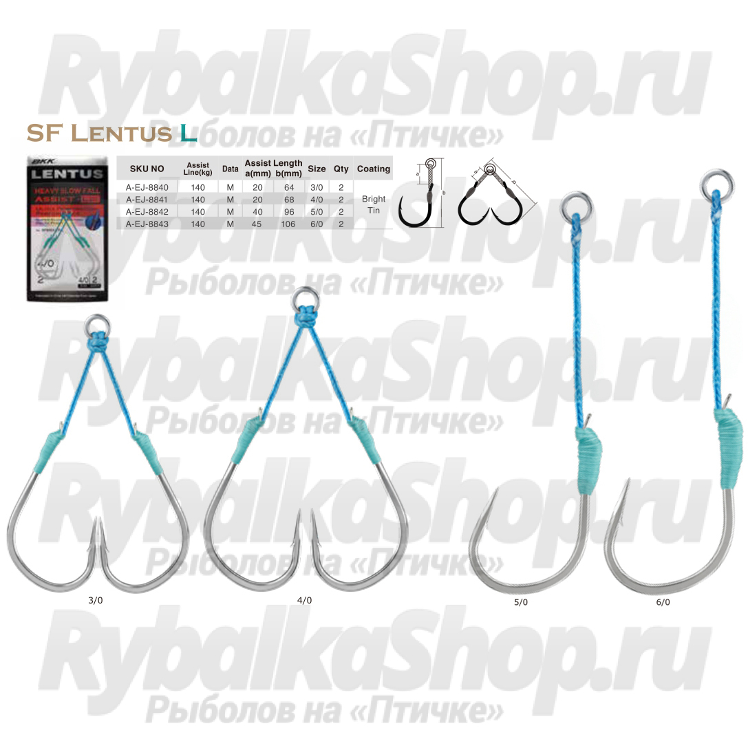 BKK SF Lentus (L) SF8063 - крючок-ассист для оснащения морских приманок. Сам крючок Lentus имеет покрытие Bright Tin, которое защищает крючок от коррозии соленой водой. Благодаря фирменной заточке снижается сопротивление прокалыванию, острота жала сохраняется долгое время. Материал BKK fluorocarbon assist cord, которым оснащен ассист, обеспечивает правильную ориентацию крючка, улучшая его проникающую способность и обеспечивая хорошо сбалансированную гибкость шнура.
