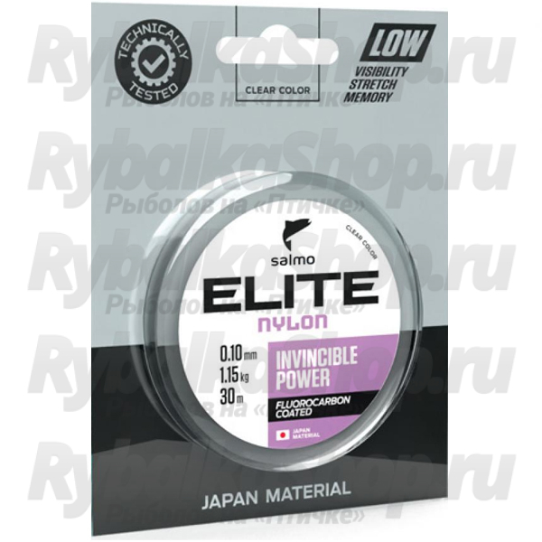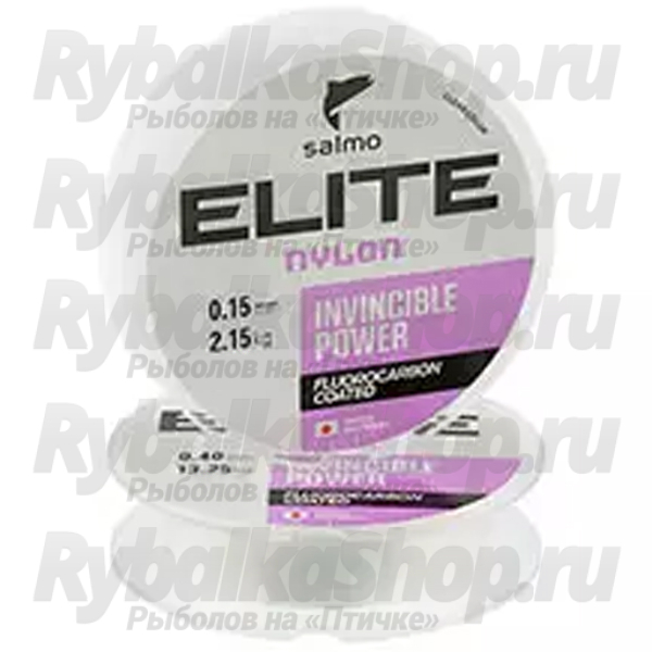 Леска Salmo Elite Fluoro Coated Nylon. "Невидимая сила" - так характеризуют разработчики представленную здесь линейку полностью прозрачного монофила Элит (Elite). По словам экспертов Салмо, при производстве использовались японские материалы. Полное название серии Fluoro Coated Nylon, то есть мононить изготовлена из прочного нейлона и покрывается специальным слоем из флюорокарбона. Он отражает свет под водой таким образом, что леска почти полностью невидима для рыбы. Благодаря такому покрытию, повышается стойкость серии к абразиву. Нить обладает малым растяжением, потому позволяет четко контролировать проводку приманок или отслеживать робкие поклевки. При этом специалисты Салмо подчеркивают почти полное отсутствие "памяти", гладкость и калибровку по всей длине. Данная линейка летняя. Рекомендована Elite модификации Fluoro Coated Nylon как для спиннинговой ловли, так и для поплавочной или донной рыбалки. Выпускается данная леска в удобной размотке по 100 м.