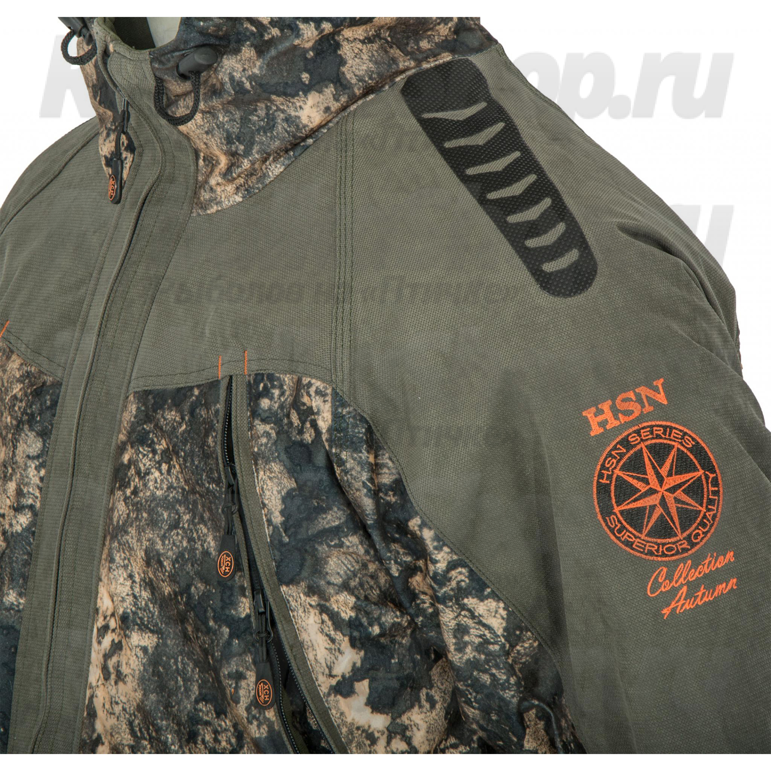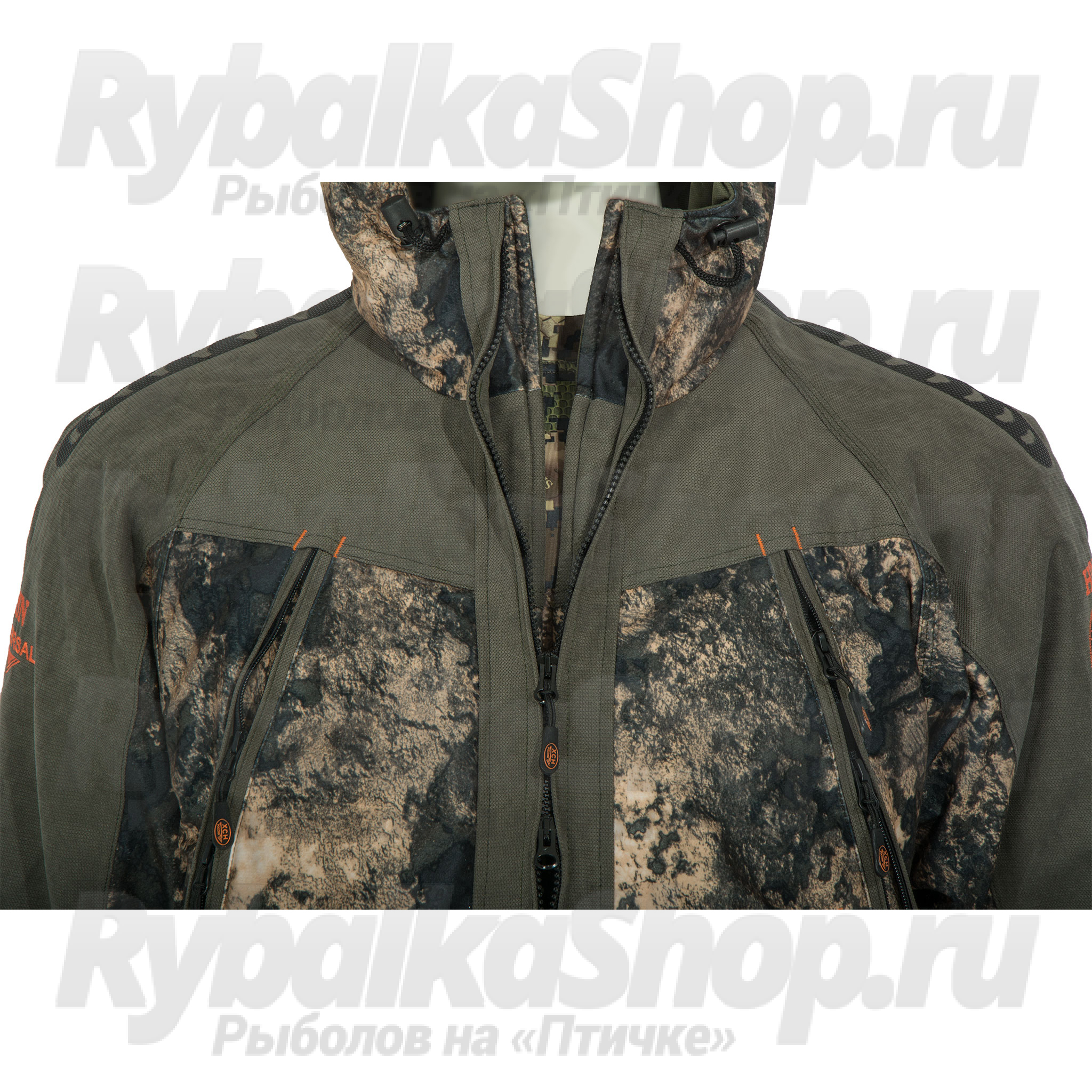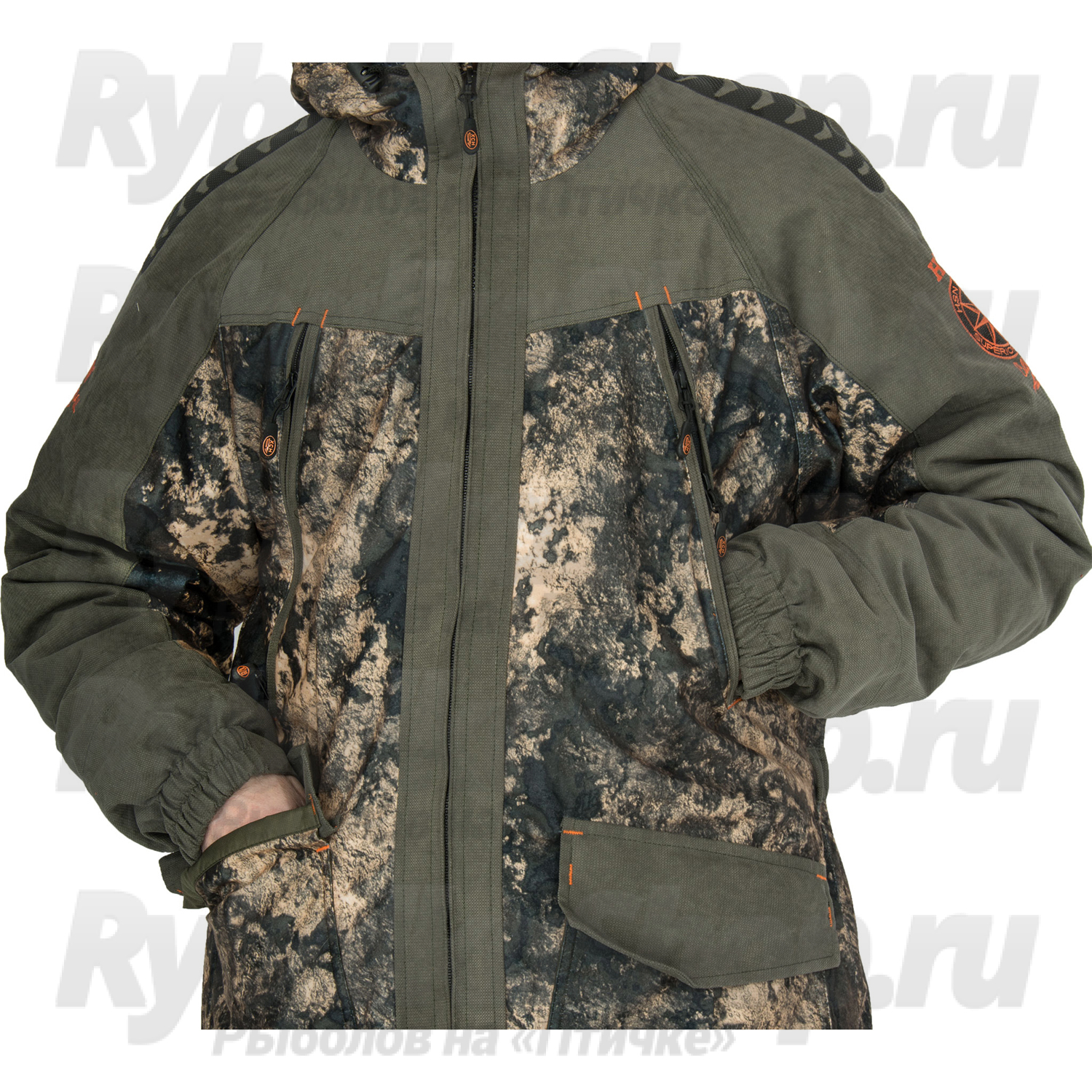 Верхний слой изготовлен из высокотехнологичной бесшумной мембранной ткани Алова, обладающей отличными ветро и влагозащитными свойствами. Износостойкие накладки увеличивают срок эксплуатации изделия. Куртка прямого силуэта с центральной застежкой на молнию. На плечах – противоскользящие накладки.
