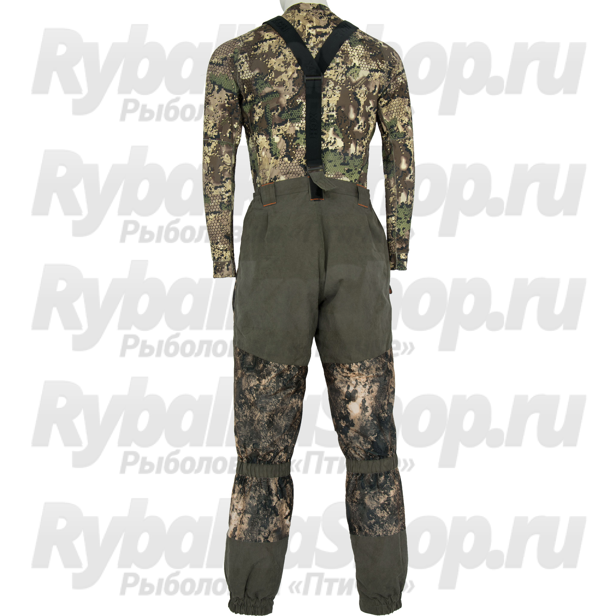 Подкладка брюк полностью из скользящего шелка. Все застежки молнии дополнены фирменными пуллерами, что позволяет с комфортом пользоваться ими не снимая перчаток. Брюки с притачным поясом и пятью шлевками для ремня. Брюки на съемных помочах, которые крепятся при помощи липучки «велькро». Лямки регулируются при помощи пластиковых пряжек. Ширинка (гульфик) на молнии. На передних половинках брюк карманы в шве, застегивающиеся на молнию.
