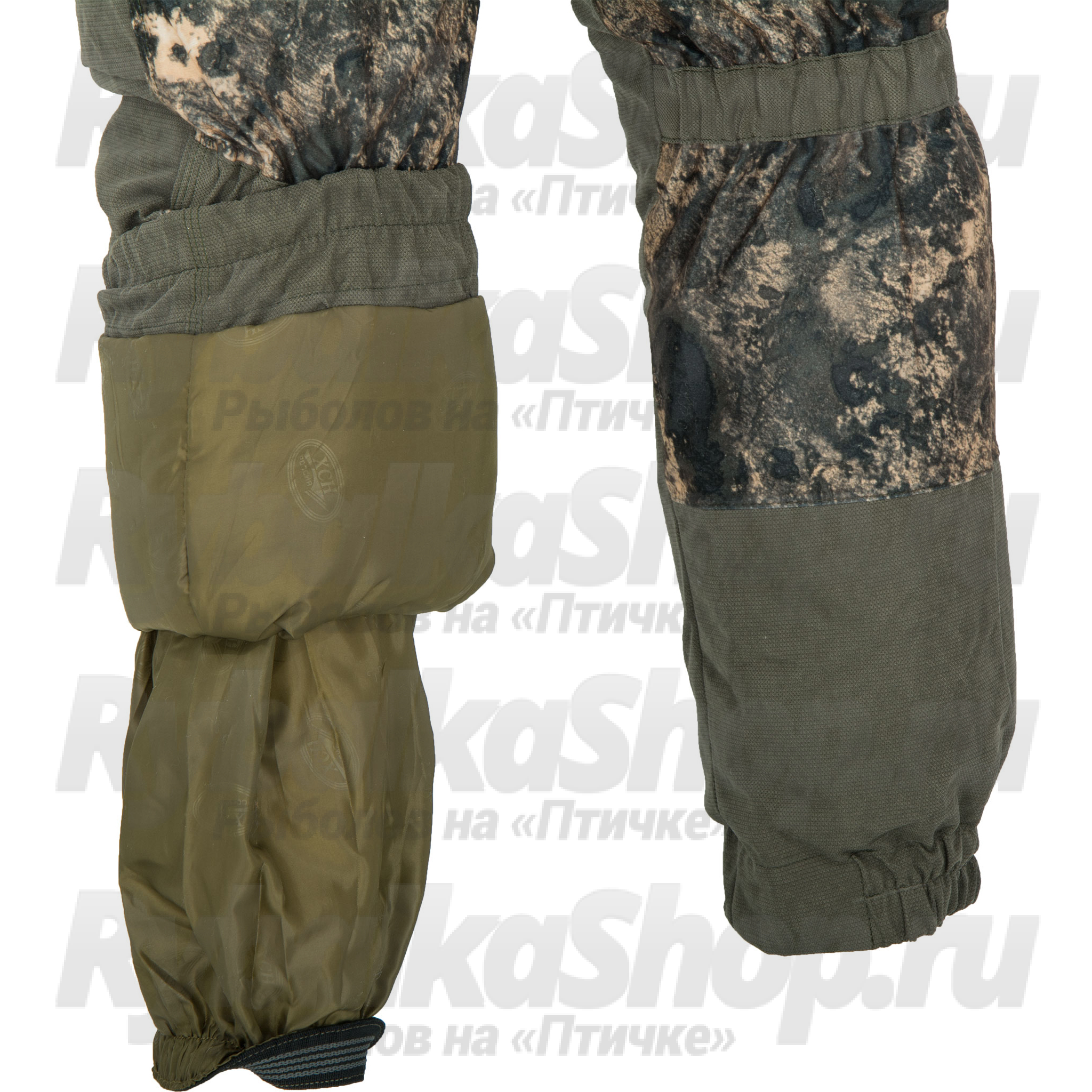 В нижней части брюк имеется «юбка» - неразъемная деталь стянута резиновой тесьмой с нескользящей внутренней поверхностью, плотно обхватывает ногу в районе щиколотки. Низ брюк частично собран на резинку для более плотного пролегания.