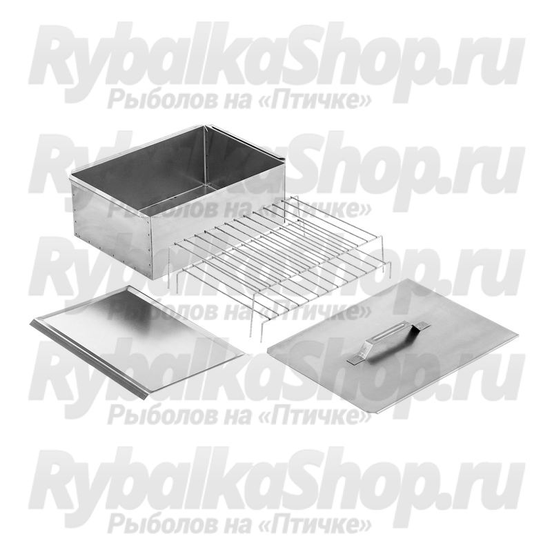 Комплектация: коптильня, крышка, две решетки, поддон