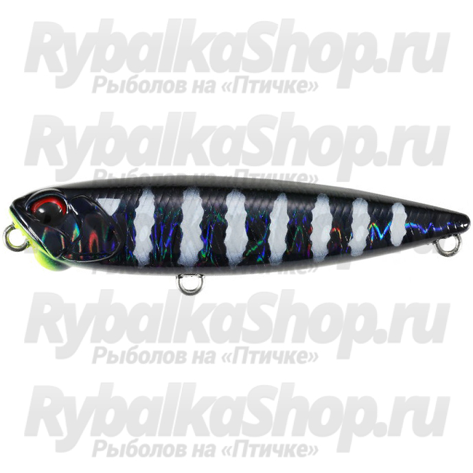 Воблер имеет классическую для уокеров, заднюю огрузку и занимает в воде в спокойном состоянии вертикальное положение;