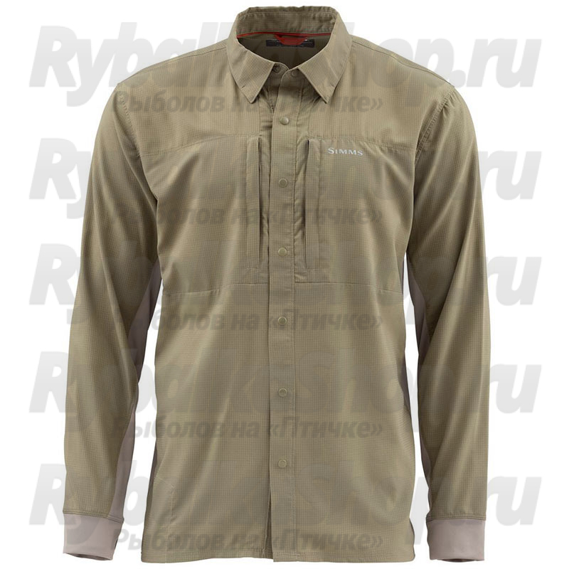 Рубашка Simms Intruder BiComp Shirt '20, Tan - высокотехнологичное изделие, которое гарантирует надежную защиту от ультрафиолета и обладает превосходными дышащими свойствами. Вместительные два нагрудных кармана на молнии позволяют хранить необходимые рыболовные аксессуары, даже коробку для мушек. Трикотажная ткань на манжетах также выполняет свою функцию: если вы подняли манжеты до локтя, они так и будут держаться, не сползая.
