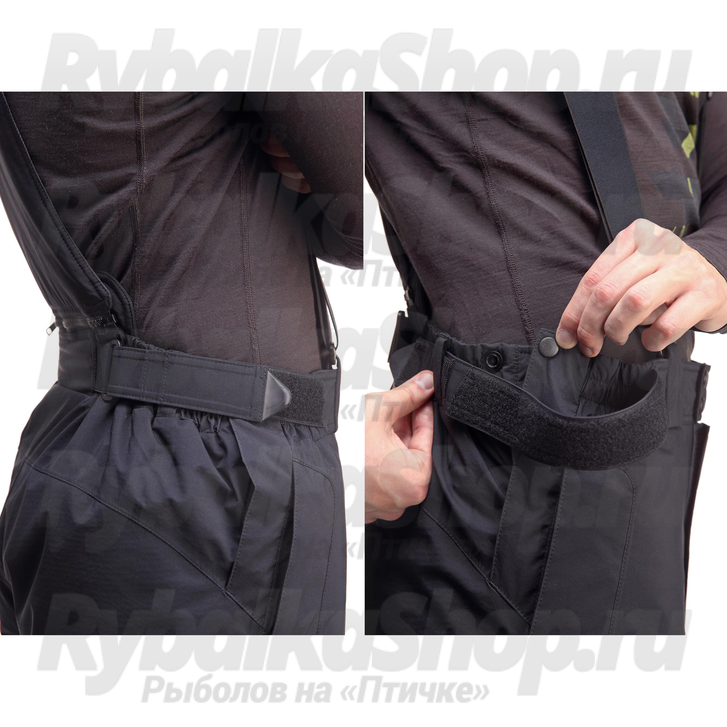 Легкий, теплый, абсолютно непромокаемый полукомбинезон из надежной двухслойной мембранной ткани. Высокая, отстегивающаяся спинка надежно защищает поясницу и часть спины от холода и ветра. Удобные широкие бретели, регулируются по длине. Размер по талии можно изменить с помощью хлястиков на липучке, расположенных на поясе комбинезона. Анатомический крой полукомбинезона абсолютно не стесняет движений. Малошуршащий материал. Рекомендован охотникам.