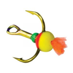 Тройник-капля с красным хвостом тип Gold EcoPro применяются в качестве привлекающих элементов, призванных повысить привлекательность блесен, мормышек, балансиров и других приманок, применяемых для подледной ловли. Яркая капля служит раздражителем для хищника и привлекает его внимание, но тем не менее не отпугивает осторожную рыбу.