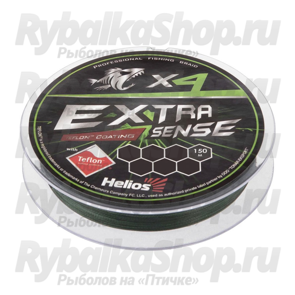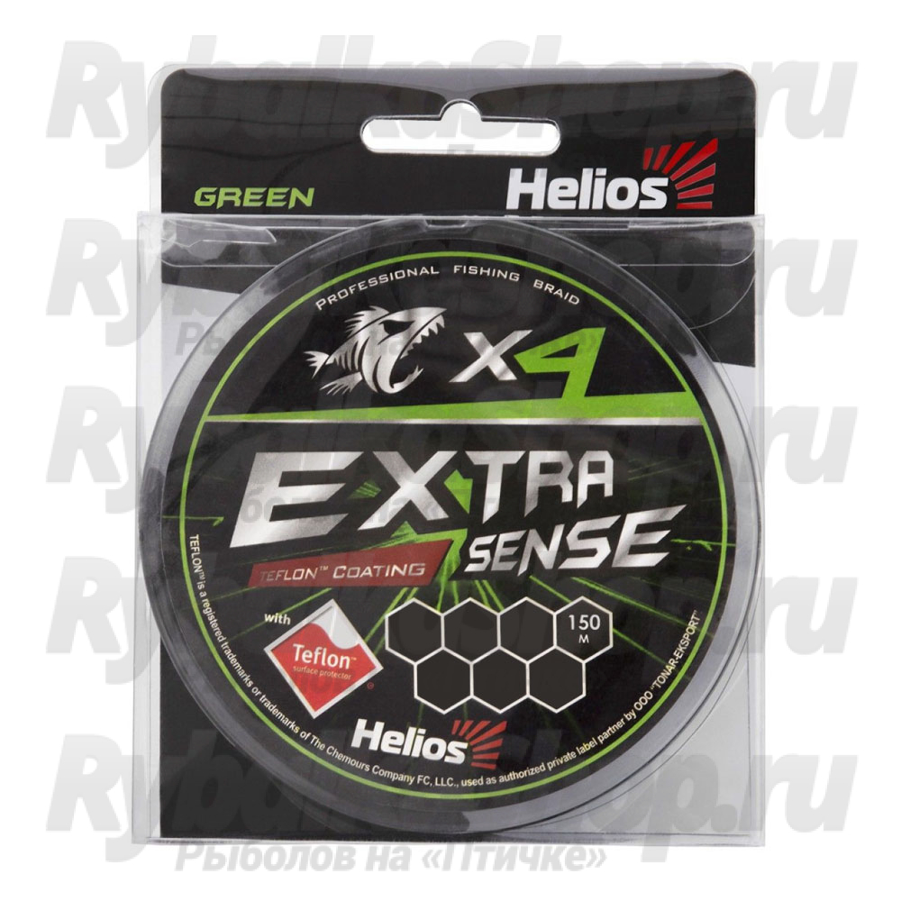Helios Extrasense X4 PE Green – качественный четырехжильный плетеный шнур с инновационным покрытием Teflon. Данное покрытие увеличивает прочность шнура на узле, повышает износостойкость и обеспечивает отличное скольжение через кольца спиннинга, увеличивая дальность заброса. Плетенка имеет практически нулевую растяжимость, подходит для использования и в пресной, и в соленой воде. Цвет шнура – зеленый, длина – 150 метров.