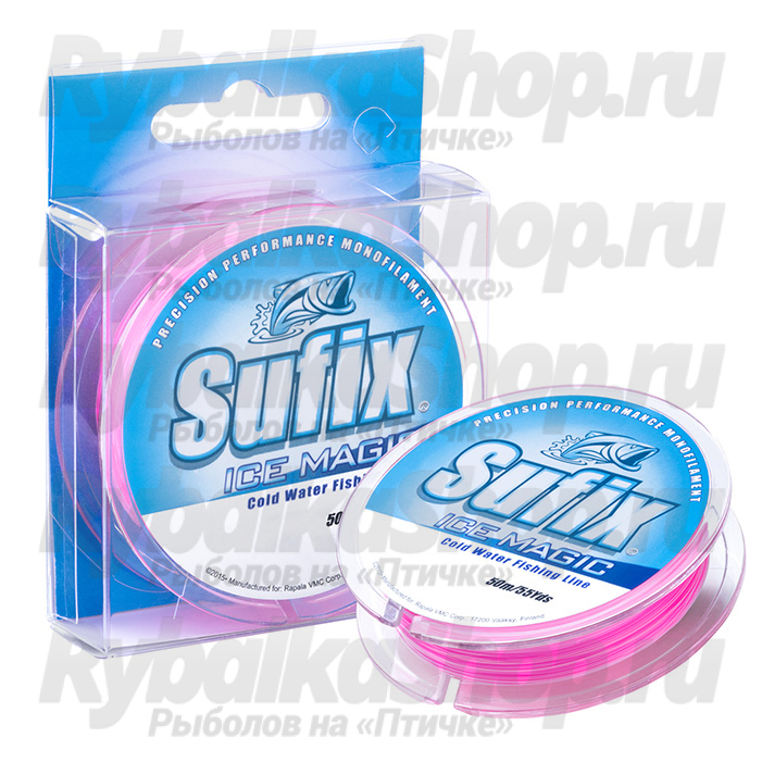 Леска Sufix Ice Magic бело/розовая для рыбалки в холодной и теплой воде. Идеально подходит для подлёдной рыбалки. Почти не имеет памяти, сочетает высокую разрывную нагрузку (в том числе на узлах) с мягкостью и эластичностью. Тонет, хорошо откалибрована. Размотка 50 м.