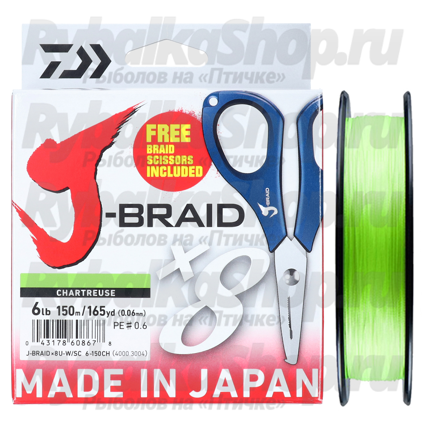Daiwa представляет набор Daiwa J-Braid X8E-W/SC 150m Chartreuse, в который входит леска J-Braid X8 цвет Светло-зеленый в размотке 150 метров и ножницы Daiwa J-Braid Scissor.
