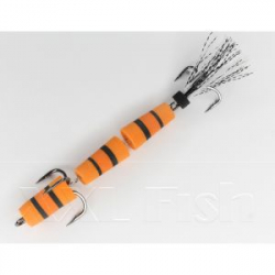 Приманка Мандула "Флажок" XXL Fish Модель №130Ж предназначена для ловли судака, щуки и сома методом джига. Применяется эта модель с грузом чебурашка весом 10-60 г. При хорошем клёве, рыба садится на большой тройник, при слабом - кусает за хвост и прихватывает тот тройник, что поменьше. Вертикально на дне, причём, на любой глубине, может стоять только приманка из материала типа пенопласта. Для имитации кормящейся рыбки со дна проводка должна быть, достаточно деликатной. Даже одного оборота катушки будет слишком много. Попробуйте на мелководье имитировать короткие скачки такой приманки перед собой из стороны в сторону, работая только кончиком спиннинга, и Вы сразу поймёте все нюансы. Естественно, эти приманки можно использовать и при обычной ступенчатой проводке (2-4 оборота катушки и пауза на падении). Но не надо забывать, что пауза после касания дна у них является “активной” – приманка остаётся в рабочей позиции и голосует за поклёвку. Теперь появляется смысл продлить паузу и после касания дна, что даст некоторое время “на раздумье” малоактивной и осторожной рыбе. Также можно приманку смазать аттрактантом что на длительной паузе будет только в плюс. А количество расцветок хватит на любой вкус.
