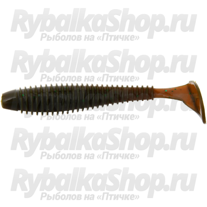 Серия Flagman Mystic Fish Fat отличается ребристым, округлым в сечении телом, которое переходит в сплющенный с боков хвостик. На нем расположена достаточно большая хвостовая пластина – «пятка». Частые ребра на теле служат дополнительным привлекающим элементом. С одной стороны они создают соблазнительные для хищника завихрения воды, а активную игру хвостика и турбулентность хищник чувствует с большого расстояния, с другой – многократно увеличивают площадь поверхности приманки, благодаря чему в окружающую среду попадает большее количество аттрактанта, которым пропитана приманка. Для удобства использования в спинке виброхвоста сделана специальная прорезь, куда идеально прячется жало офсетного крючка, что значительно повышает незацепляемость приманки.