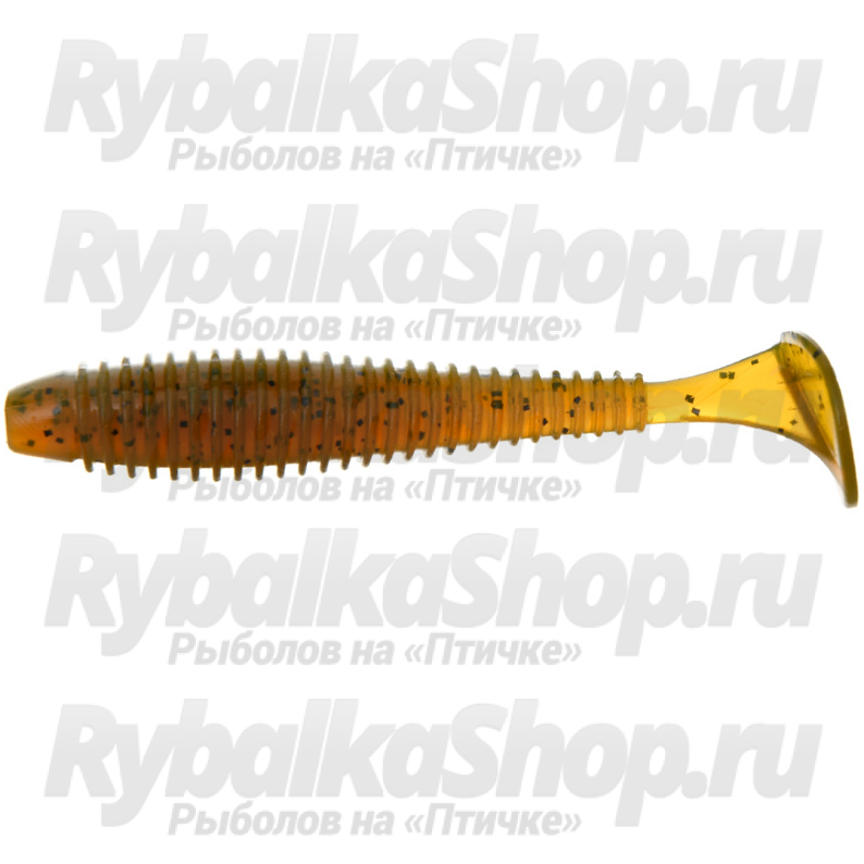 Серия Flagman Mystic Fish Fat отличается ребристым, округлым в сечении телом, которое переходит в сплющенный с боков хвостик. На нем расположена достаточно большая хвостовая пластина – «пятка». Частые ребра на теле служат дополнительным привлекающим элементом. С одной стороны они создают соблазнительные для хищника завихрения воды, а активную игру хвостика и турбулентность хищник чувствует с большого расстояния, с другой – многократно увеличивают площадь поверхности приманки, благодаря чему в окружающую среду попадает большее количество аттрактанта, которым пропитана приманка. Для удобства использования в спинке виброхвоста сделана специальная прорезь, куда идеально прячется жало офсетного крючка, что значительно повышает незацепляемость приманки.