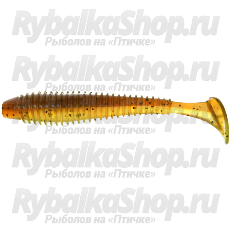 Серия Flagman Mystic Fish Fat отличается ребристым, округлым в сечении телом, которое переходит в сплющенный с боков хвостик. На нем расположена достаточно большая хвостовая пластина – «пятка». Частые ребра на теле служат дополнительным привлекающим элементом. С одной стороны они создают соблазнительные для хищника завихрения воды, а активную игру хвостика и турбулентность хищник чувствует с большого расстояния, с другой – многократно увеличивают площадь поверхности приманки, благодаря чему в окружающую среду попадает большее количество аттрактанта, которым пропитана приманка. Для удобства использования в спинке виброхвоста сделана специальная прорезь, куда идеально прячется жало офсетного крючка, что значительно повышает незацепляемость приманки.