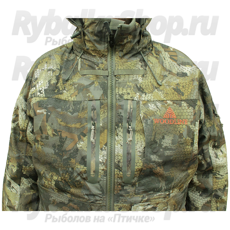 Внешняя защитная куртка выполненная из специальной мембраны Woodline microshield membrane защищающей вас от ветра, воды, мороза и других негативных погодных явлений, при этом, не замыкая естественного пароотведения и создавая комфортный микроклимат внутри костюма в непосредственной близости к вашему телу.