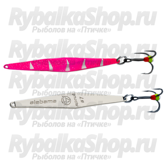 Sprut Alabama #9 (90mm/15g) — классическая блесна вытянутой формы, которая в первую очередь подходит для ловли судака, берша и крупного окуня. При резких взмахах блесна характерно осыпается, а при средних уходит в сторону от оси на небольшое расстояние. На блесну установлен увеличенный тройник-капля, который дает точку атаки хищника и предупреждает сход рыбы.