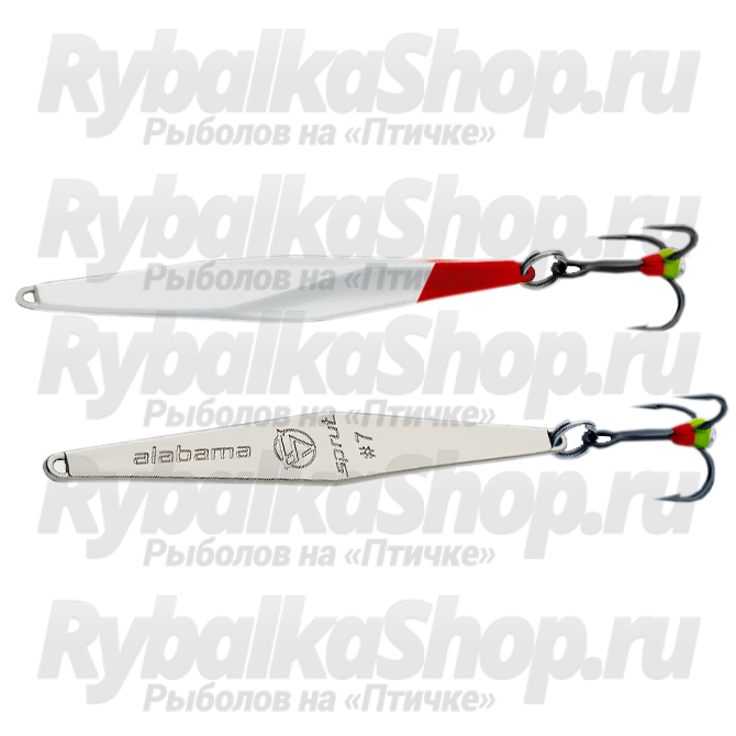 Sprut Alabama #9 (90mm/15g) — классическая блесна вытянутой формы, которая в первую очередь подходит для ловли судака, берша и крупного окуня. При резких взмахах блесна характерно осыпается, а при средних уходит в сторону от оси на небольшое расстояние. На блесну установлен увеличенный тройник-капля, который дает точку атаки хищника и предупреждает сход рыбы.