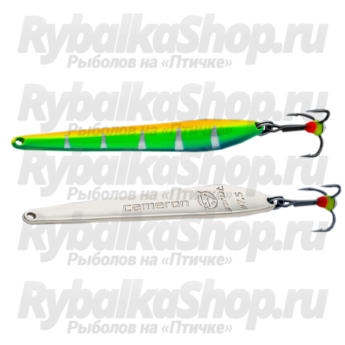 Sprut Cameron #7,5 (75mm/8,6g) — универсальная блесна для всех видов хищников. Область её использования - водоемы со средней глубиной и умеренным течением. Выпускается в 15 цветовых решениях, включая девять цветных, три комбинированных (серебро/медь, золото/ медь, серебро/золото) и три классических (серебро, медь, золото).