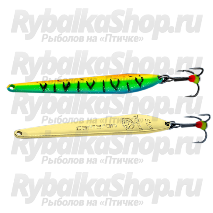 Sprut Cameron #7,5 (75mm/8,6g) — универсальная блесна для всех видов хищников. Область её использования - водоемы со средней глубиной и умеренным течением. Выпускается в 15 цветовых решениях, включая девять цветных, три комбинированных (серебро/медь, золото/ медь, серебро/золото) и три классических (серебро, медь, золото).