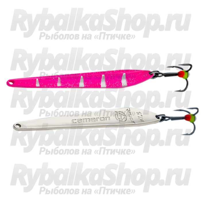 Sprut Cameron #7,5 (75mm/8,6g) — универсальная блесна для всех видов хищников. Область её использования - водоемы со средней глубиной и умеренным течением. Выпускается в 15 цветовых решениях, включая девять цветных, три комбинированных (серебро/медь, золото/ медь, серебро/золото) и три классических (серебро, медь, золото).