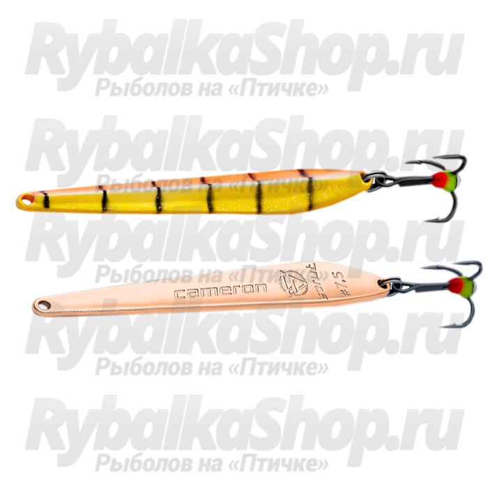 Sprut Cameron #7,5 (75mm/8,6g) — универсальная блесна для всех видов хищников. Область её использования - водоемы со средней глубиной и умеренным течением. Выпускается в 15 цветовых решениях, включая девять цветных, три комбинированных (серебро/медь, золото/ медь, серебро/золото) и три классических (серебро, медь, золото).