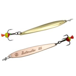 Блесны зимние Sprut Salmon - это "трехгранки" длиной 4,3 см. На внешней части корпуса приманки есть инкрустированная алая бусинка. Она хорошо заметна, благодаря "классическим" окраскам моделей: медному, цвету латуни или никеля.