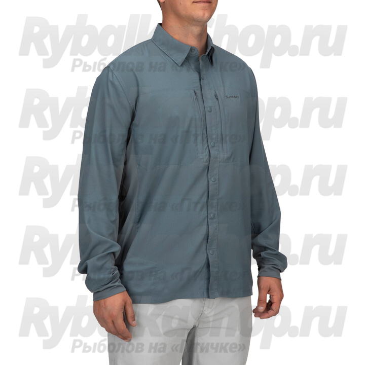 Рубашка Simms Bugstopper Intruder BiComp LS Shirt '21, Storm защищает от укусов насекомых, обеспечивая повышенную мобильность и достаточную защиту от солнца для рыбалки в течение всего дня.