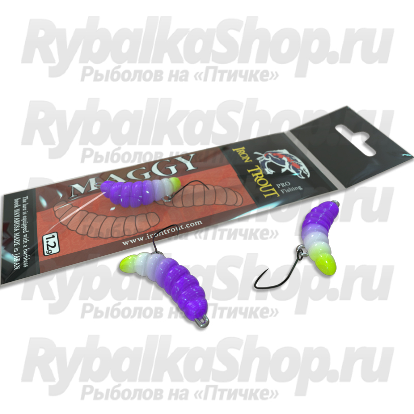 Iron Trout Maggy 1,2g - медленно тонущая приманка из пластика, требующая рывковой анимации, на равномерной проводке совершает вращательное движение. Представлена в двух весах и разнообразных цветах, в том числе светонакапливающих (GLOW).