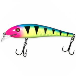 Воблер Troll DD 150F плавающий, что весьма удобно при троллинге, его лопасть выполнена из твердого пластика, не боящегося контакта с каменистым дном и топляками, надежные заводные кольца не разгибаются под большими нагрузками, а тройники превосходным образом засекают соблазнившуюся приманкой добычу.