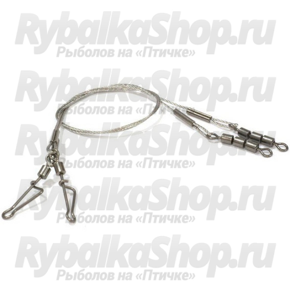 Поводок имеет 49 нитей плетения 7х7, что обеспечивает повышенную прочность и долговечность. корейского производства. Материал поводков и фурнитура проходят тестирование на разрывные нагрузки два раза. Первый раз испытывается качество комплектующих перед сборкой и второй раз испытываются уже готовые изделия из каждой отдельной партии.
