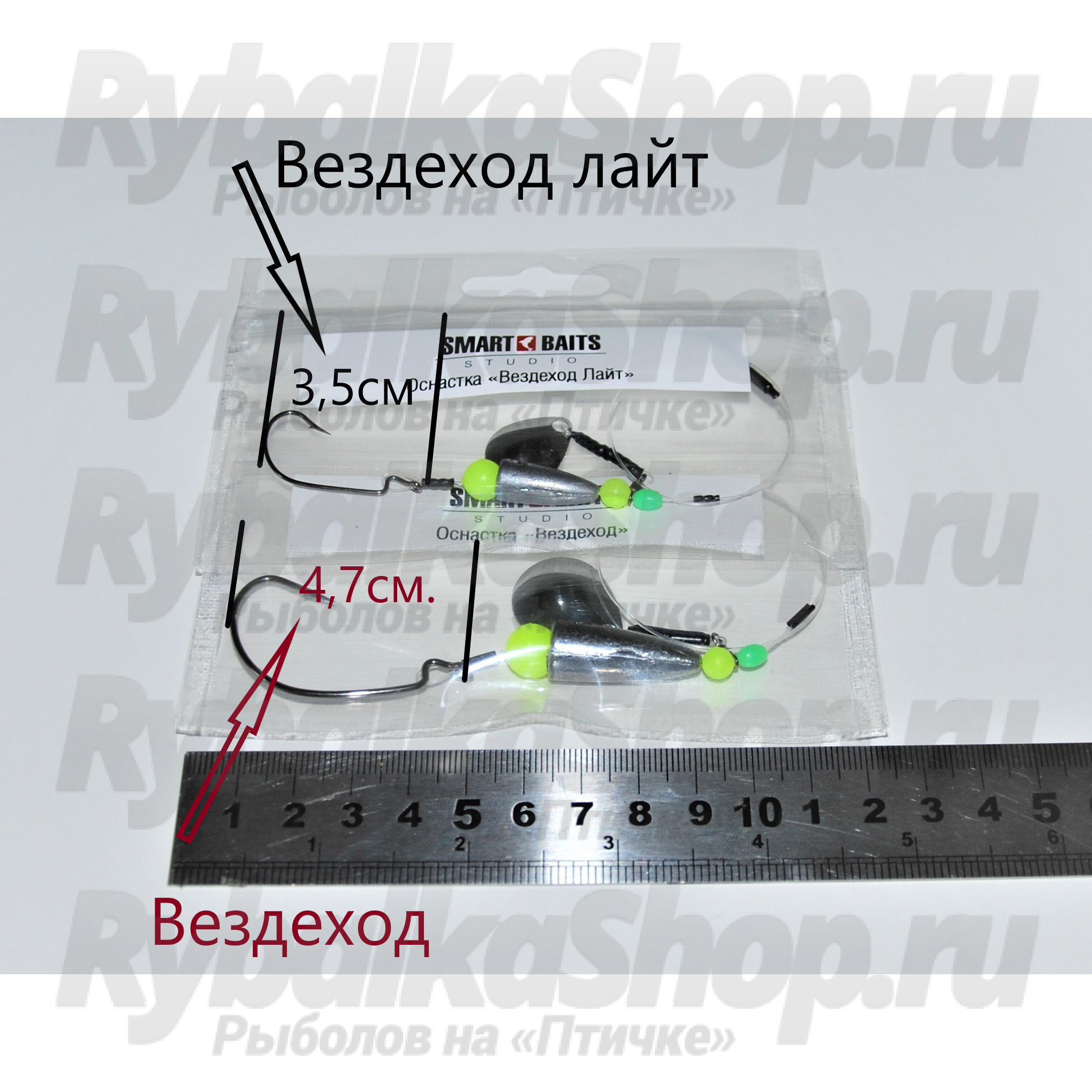 Спиннинговая оснастка «Вездеход» от Smart Baits Studio разработана для джиговой ловли в тяжелых условиях эксплуатации: в траве, коряжниках, на каменистых грядах. Эта оснастка является гибридом вертушки, каролины и спиннербейта. Вездеход обладает великолепной проходимостью и способностью облавливать очень сложные участки водоема. В этой модели «Вездехода» лепесток работает как на падении, так и на протяжке. Одна из отличительных черт: способность работы в придонном участке, на очень малой скорости проводки. В отличии от вертушки, лепесток «Вездехода» вращается выше тела приманки. Благодаря этому, касание дна не сбивает работу лепестка. На падении приманки, лепесток вращается в вертикальном положении, что является своеобразным парашютом, придерживающим приманку в толще воды. Зависание приманки провоцирует поклевку хищника, особенно щуки. Оснастка доказала свою эффективность на очень многих водоемах, в том числе и запрессованных.