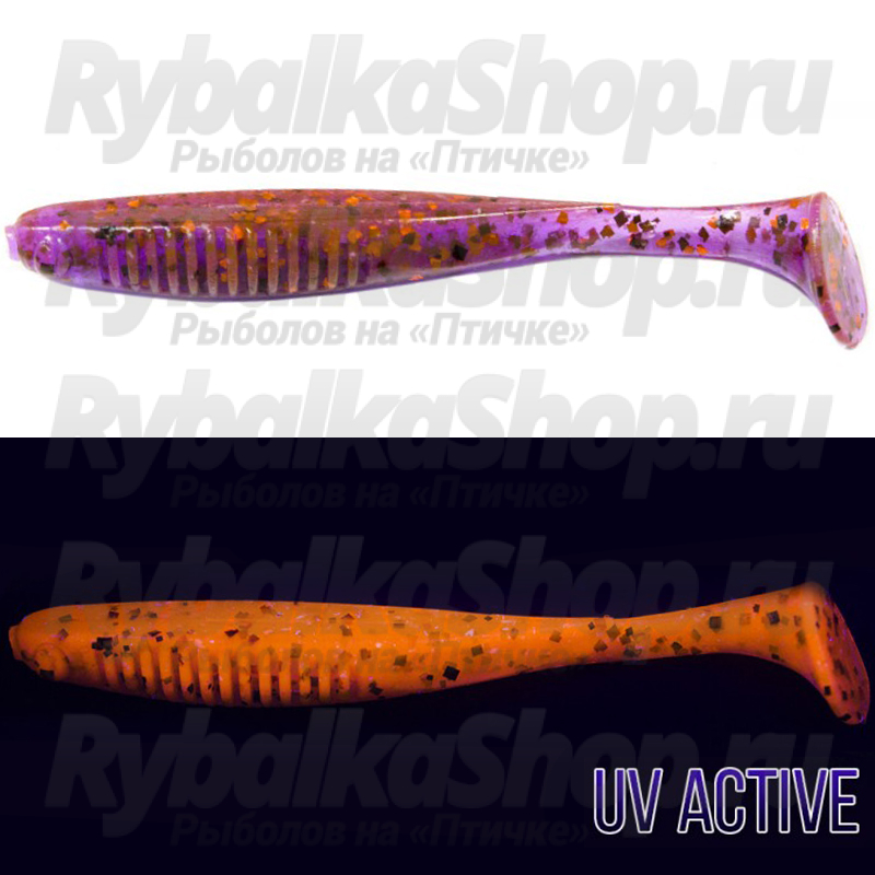 Приманка демонстрирует стабильную игру как на реках с сильным течением, так и на прудах, и водохранилищах, превосходно соблазняя окуня, щуку, судака и других полухищных рыб. Помимо высоких съедобных качеств этот виброхвост обладает хорошей стойкостью к зубам хищника, что значительно продлевает жизнь приманки. Монтажи с оффсетным крючком, одинарным или двойником наилучшим образом сочетаются с E.T.Shad.