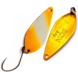 В серии BON — представлены блесны в весе 2.6, 3.2 и 3.8 грамма. Формы и расцветки блёсен разработаны профессиональными рыболовами-спортсменами, специализирующимися на форелевой ловле с учётом специфики на наших «платниках»! Размер блесны Troutland BON 3.2 - 33х13 мм.
