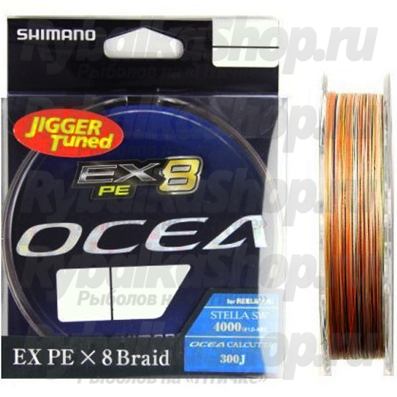 Shimano OCEA EX8 – это шнур нового поколения, который фактически лишен старения и может отслужить два-три полноценных сезона рыбалки.8-ми жильный плетёный шнур с повышенной прочностью и уровнем скольжения. Выполнен из высококлассного PE материала, что придаёт шнуру особую мягкость и высокую чувствительность. Производится для внутреннего японского рынка.  Плетенка окрашена в пять цветов. Такая окраска называется мультиколор и предназначена для отслеживания местоположения приманки, а при отвесной ловле и джиге – отслеживания глубины и ее изменение. Кроме того, мультиколорный цвет обладает контрастом и хорошо визуально контролируется при любой освещенности, а сама покраска этой плетни очень стойкая.