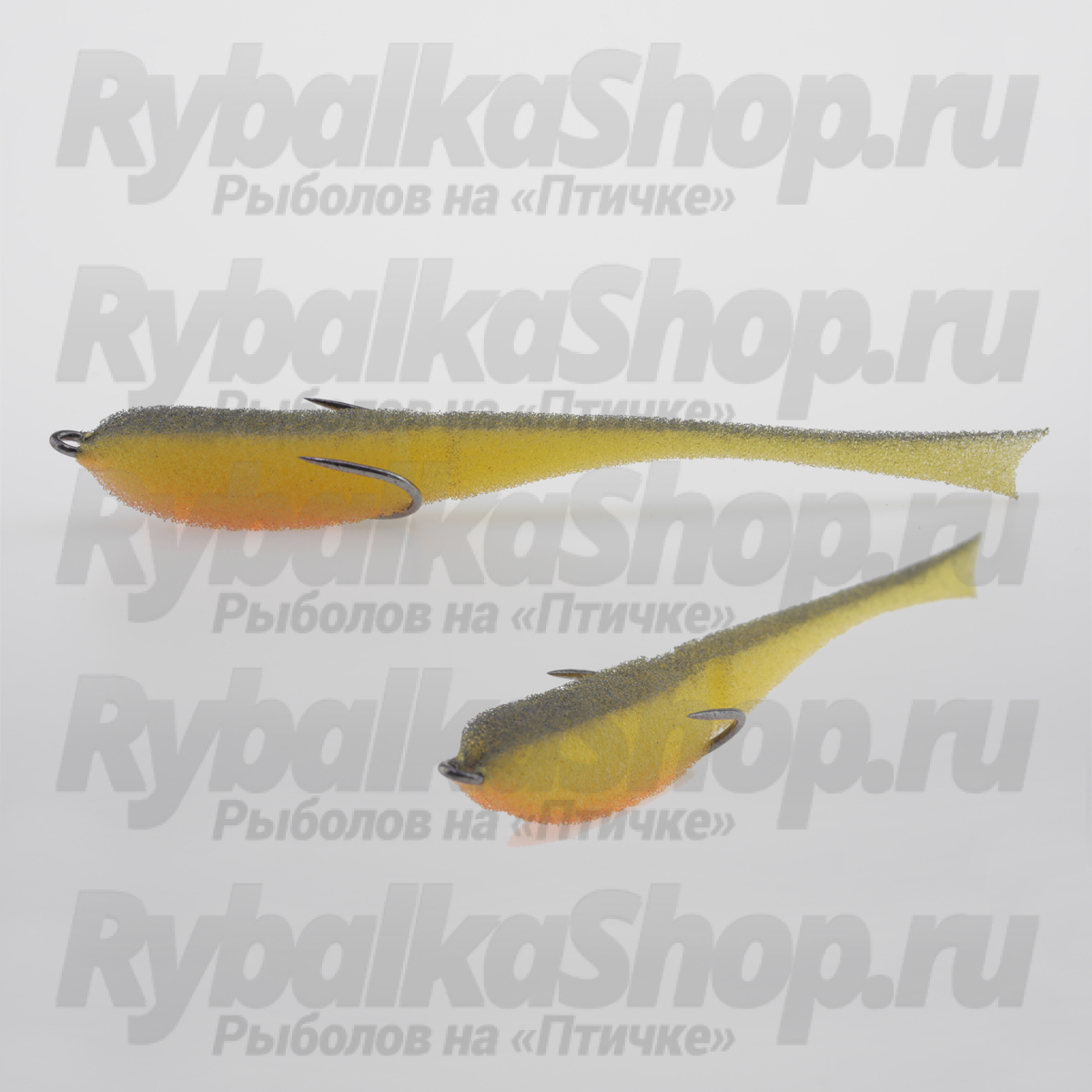 Поролоновая рыбка имеет прогонистое тело со специальными вырезами. Форма приманки - морковка. Есть модели, светящиеся в ультрафиолете (УФ).