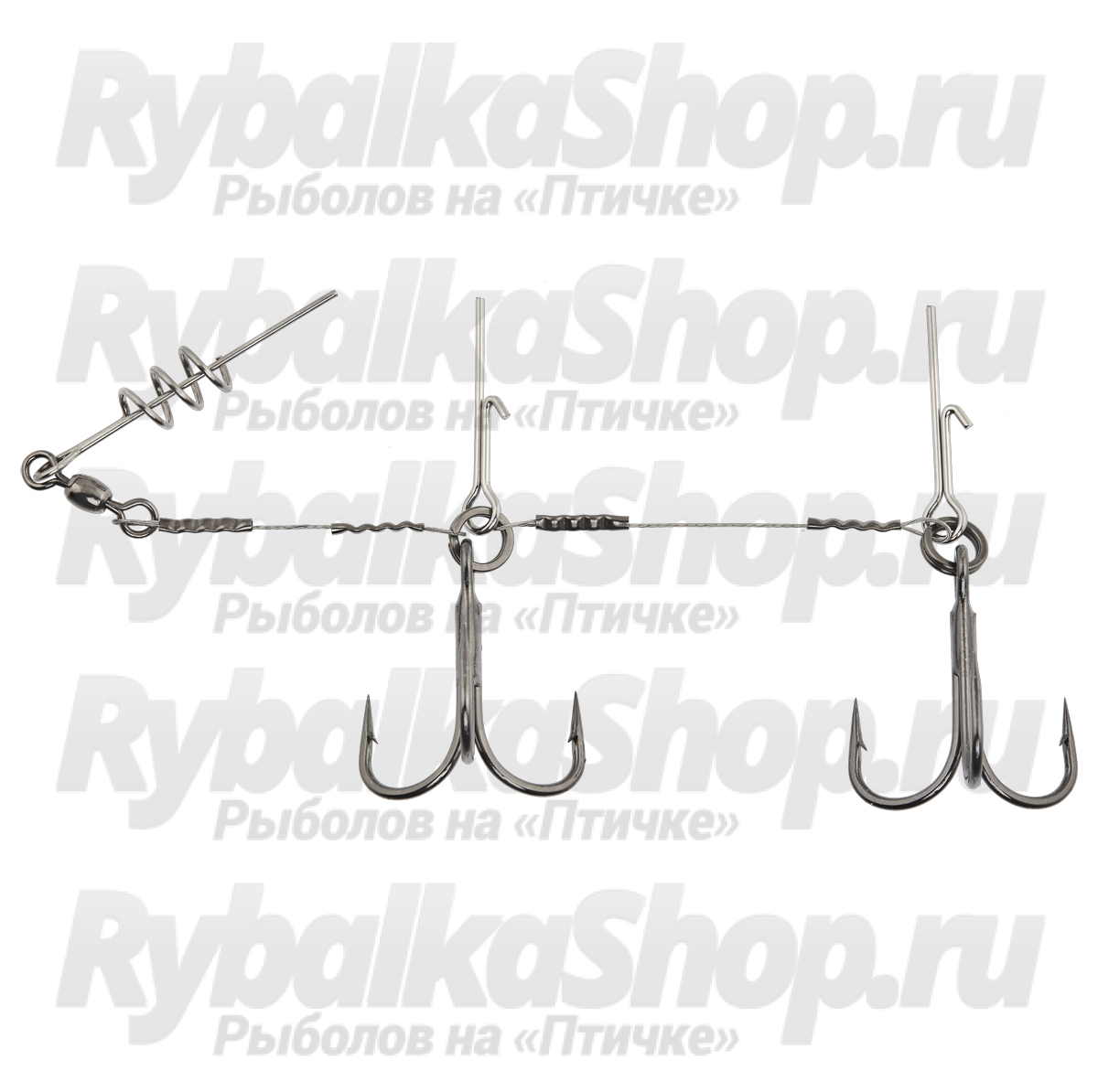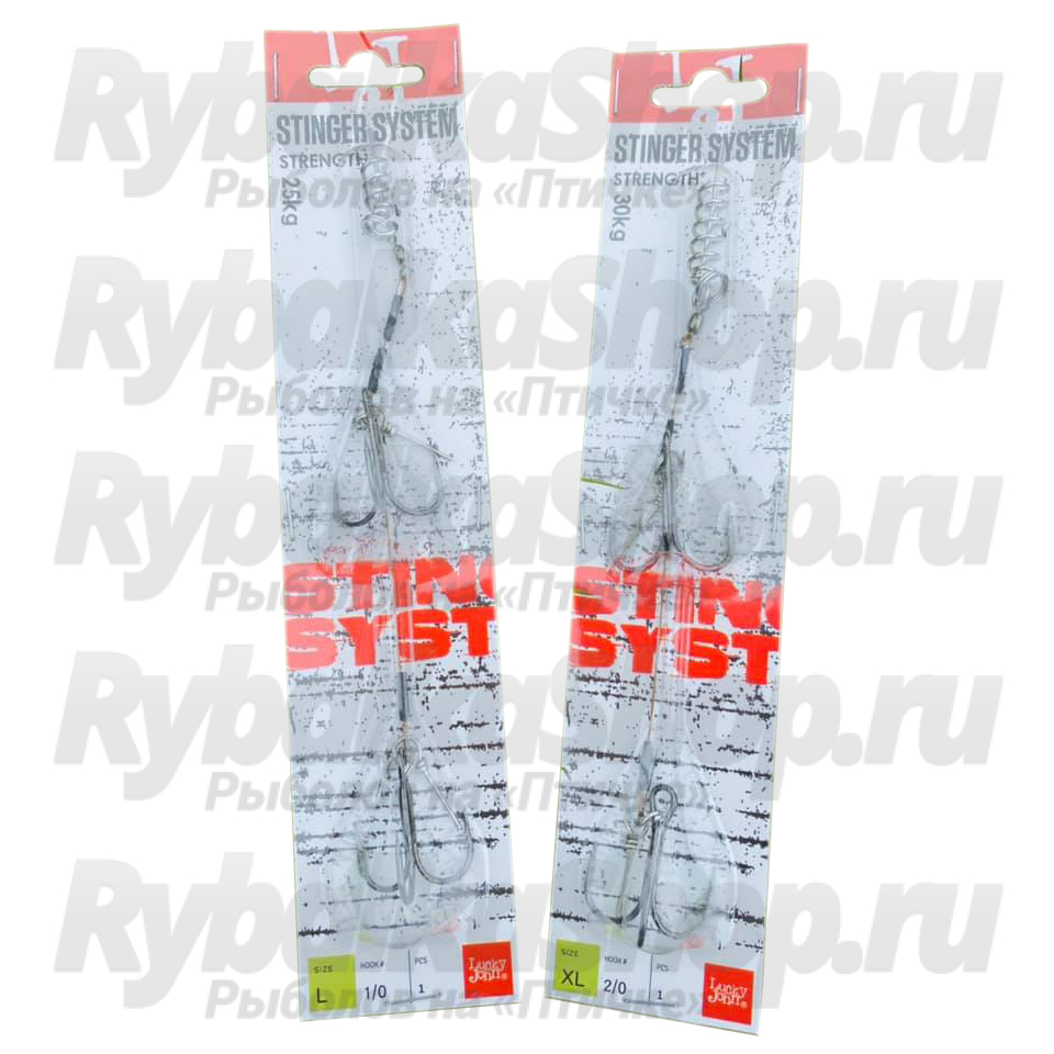 Готовая оснастка Lucky John Stinger SSW для джиг-приманок на щуку. Оснастка оснащена качественным стальным поводком из семи волокон, джиг-спиралью, мощными кольцами, а также качественными крючками