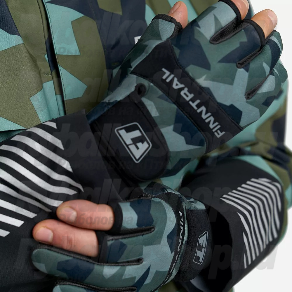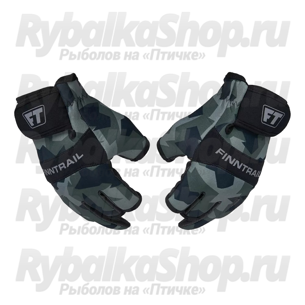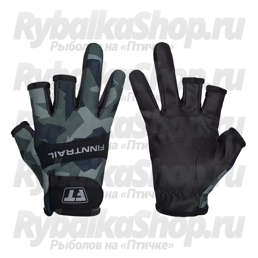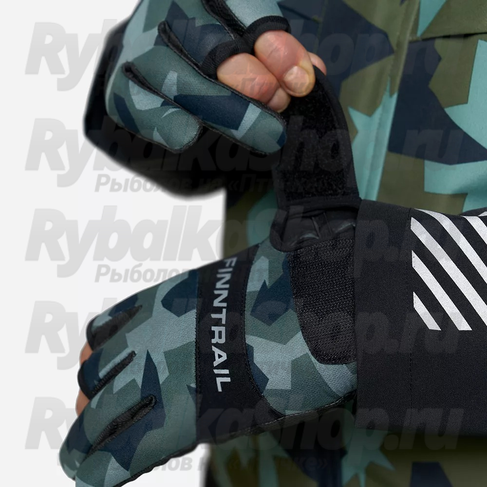Комбинированные перчатки Finntrail Neosensor СamoArmy 2730 из ткани и прочной искусственной кожи со стороны ладони. Модель с тремя открытыми пальцами для смены приманки на рыбалке или стрельбы на охоте.