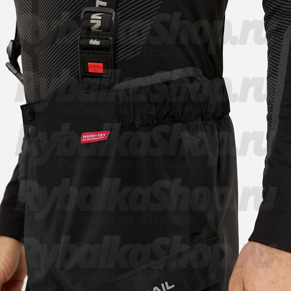 Брюки имеют два больших накладных набедренных кармана, регулировку объёма по низу брюк. Колени имеют 3D форму и не ограничивают в подвижности. Брюки оснащены высокой тёплой спинкой с подтяжками, регулируемыми по длине. Все швы и молнии костюма проклеены.