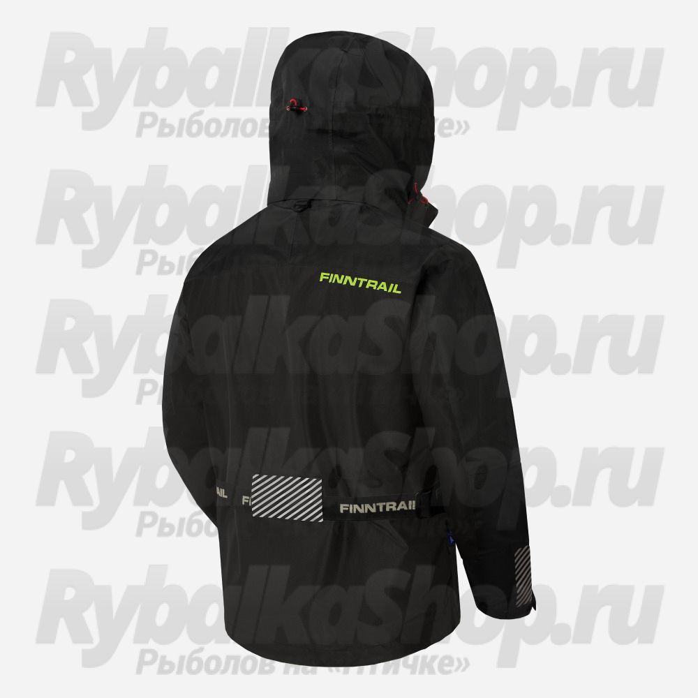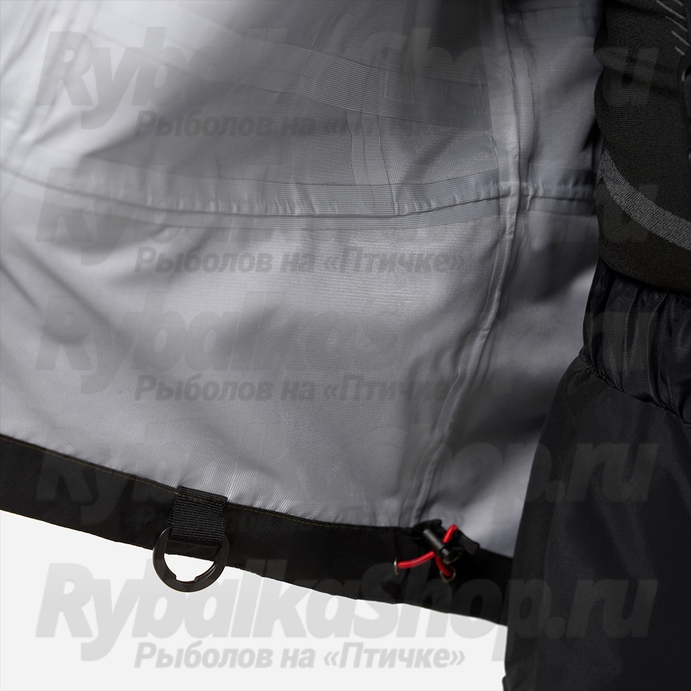 Куртка имеет комфортный флисовый ворот. Рукава снабжены плотно прилегающими манжетами из прорезиненного материала, препятствующими затеканию воды в рукава. Куртка оснащена кулисой внизу для подгонки по фигуре, страховочными кольцами для крепления чеки, светоотражающими элементами для обеспечения безопасности в темное время суток.